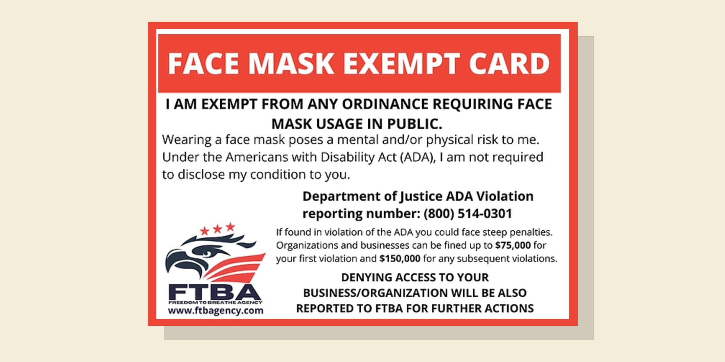 Beware! Department of Justice (DOJ) cautions that “inaccurate” materials have been circulating that appear to be endorsed by the federal government regarding businesses requiring face masks, including penalties for enforcing their usage. In the same announcement, the DOJ states that “the ADA does not provide a blanket exemption to people with disabilities from complying with legitimate safety requirements necessary for safe operations (7).