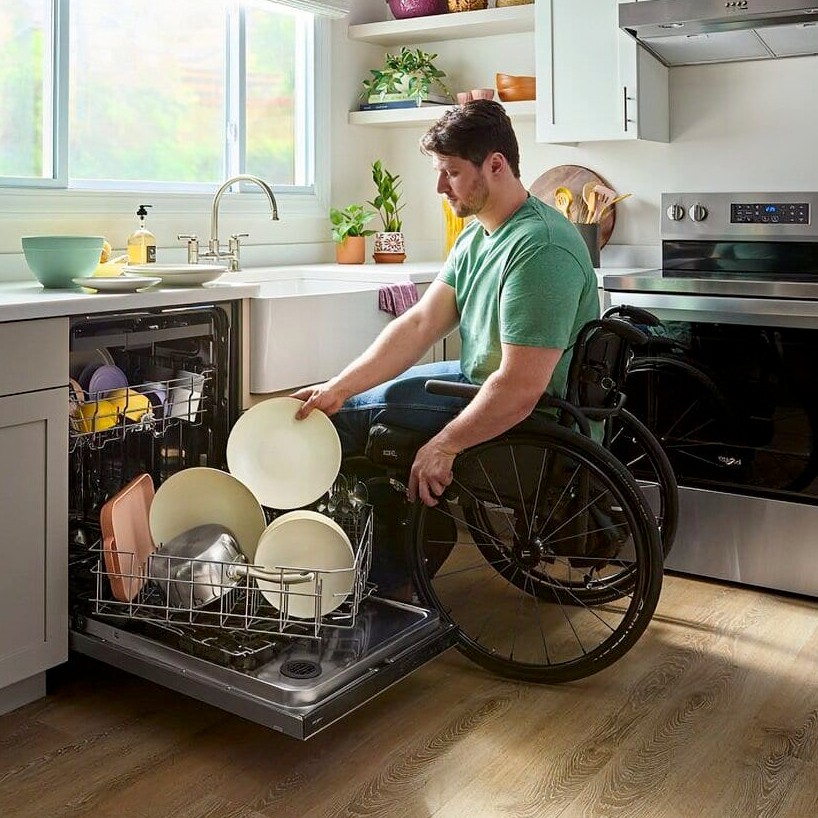 Whirlpool brought United Spinal into the design room for accessible dishwasher rack.