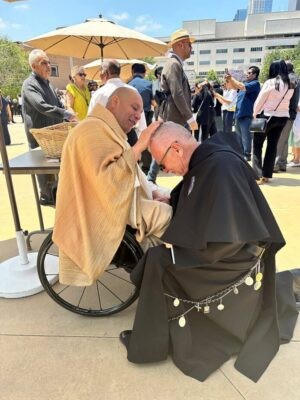 After years of volunteering, he became a religious brother and eventually entered the seminary to become a priest. In 2023, he was ordained and became Los Angeles’ first paraplegic priest.