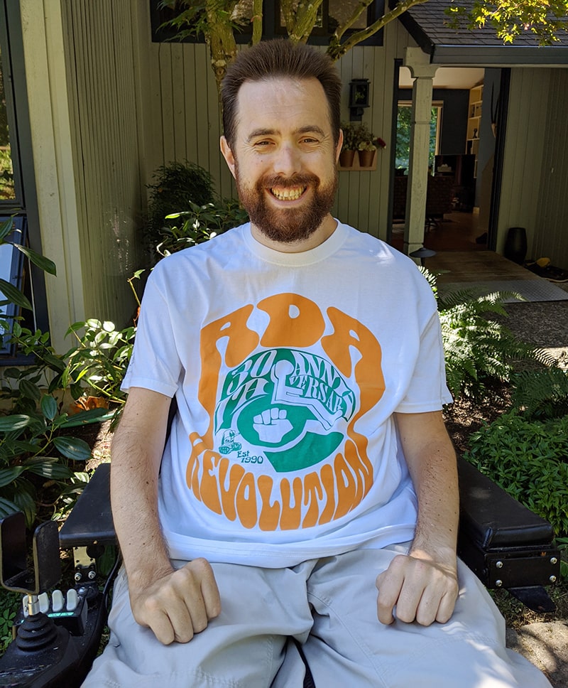 Portugal. The Man’s guitarist, Eric Howk, a wheelchair user with paraplegia, was inspired to do something in support of disability rights and the ADA by the film Crip Camp. “I was fired up about the idea of a disability revolution. I know that it was an incredibly hard-fought battle to get recognized and to get our voices heard. But it’s something that I obviously take for granted,” he says. “At the end of the day, we can either write songs or sell merchandise. We’re just dudes in a band. I can speak on camera, but just having the shirt and being able to wear that shirt and have it be a conversation starter is going to be a great thing.”