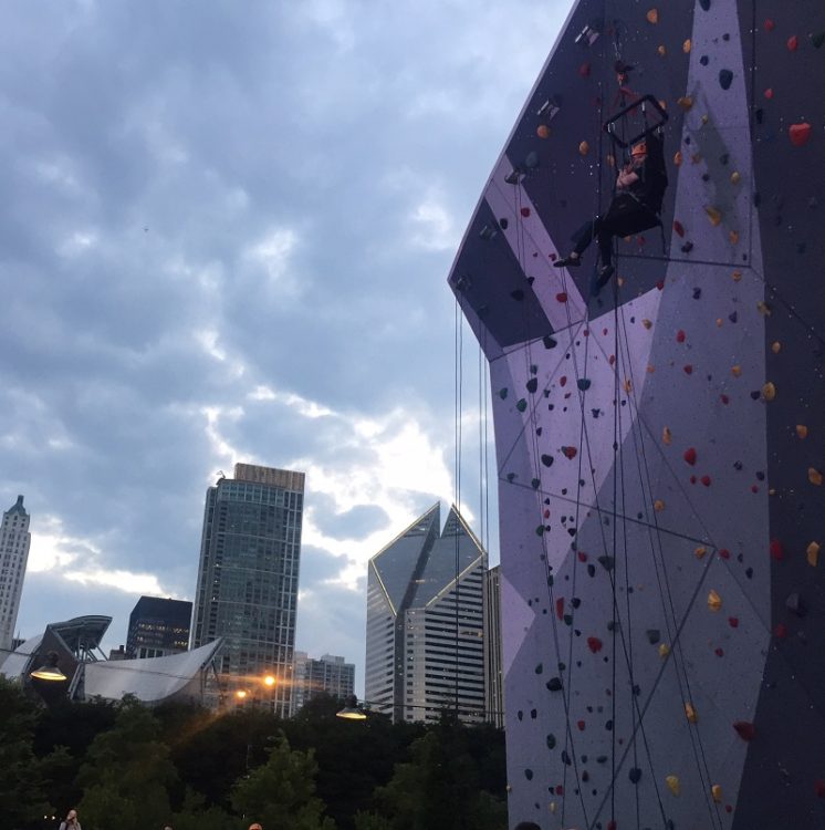 Millennium Park was one of the first stops on Shannon’s adventure. There was an adaptive rock climbing course that was set up (by Adaptive Adventures) in the park on two Monday night’s a month during the summer. Shannon admits she was nervous about participating on the course because she has never been a sporty girl.