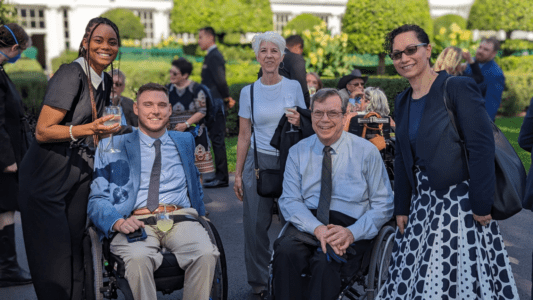 United Spinal staff and board members celebrated the 50th Anniversary of the Rehabilitation Act and the 33rd Anniversary of the Americans with Disabilities Act at the White House.