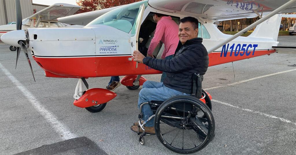 In 2010, well after immigrating to America and establishing a fulfilling career in data security in Connecticut, he found Philly Sport Pilot, a New Jersey flight school owned by a wheelchair-using pilot. Ahuja learned how to fly with factory-built hand controls on a Sky Arrow 600, a tandem two-seater aircraft. Ahuja was the school’s first wheelchair-using student. He graduated with his pilot’s license in three months.