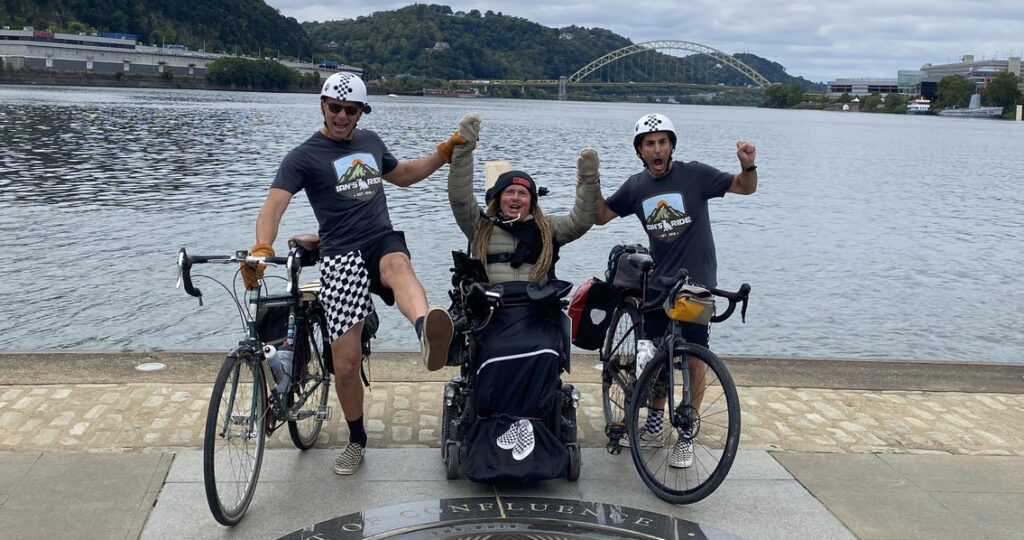 Throughout this ride, Mackay connected with many journalists, outdoor recreation councils, and fellow United Spinal Association members. On Day 9, he met up with Pittsburgh’s United Spinal Association chapter members Rebecca MacTaggart and Jared Quinteros. In his blog post for that day, he called MacTaggart the lightening rod that brought people together.
