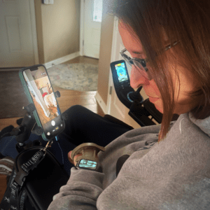 I used my iPhone 13 Pro Max and Apple watch camera remote. I use a RAM mount attached to my armrest to hold my phone. It is tightened enough so it does not move too much, but loose enough that I can adjust the angle by pushing it forward or pulling it towards me. I can also raise and lower my wheelchair and use the tilt option to change the angle of the camera.